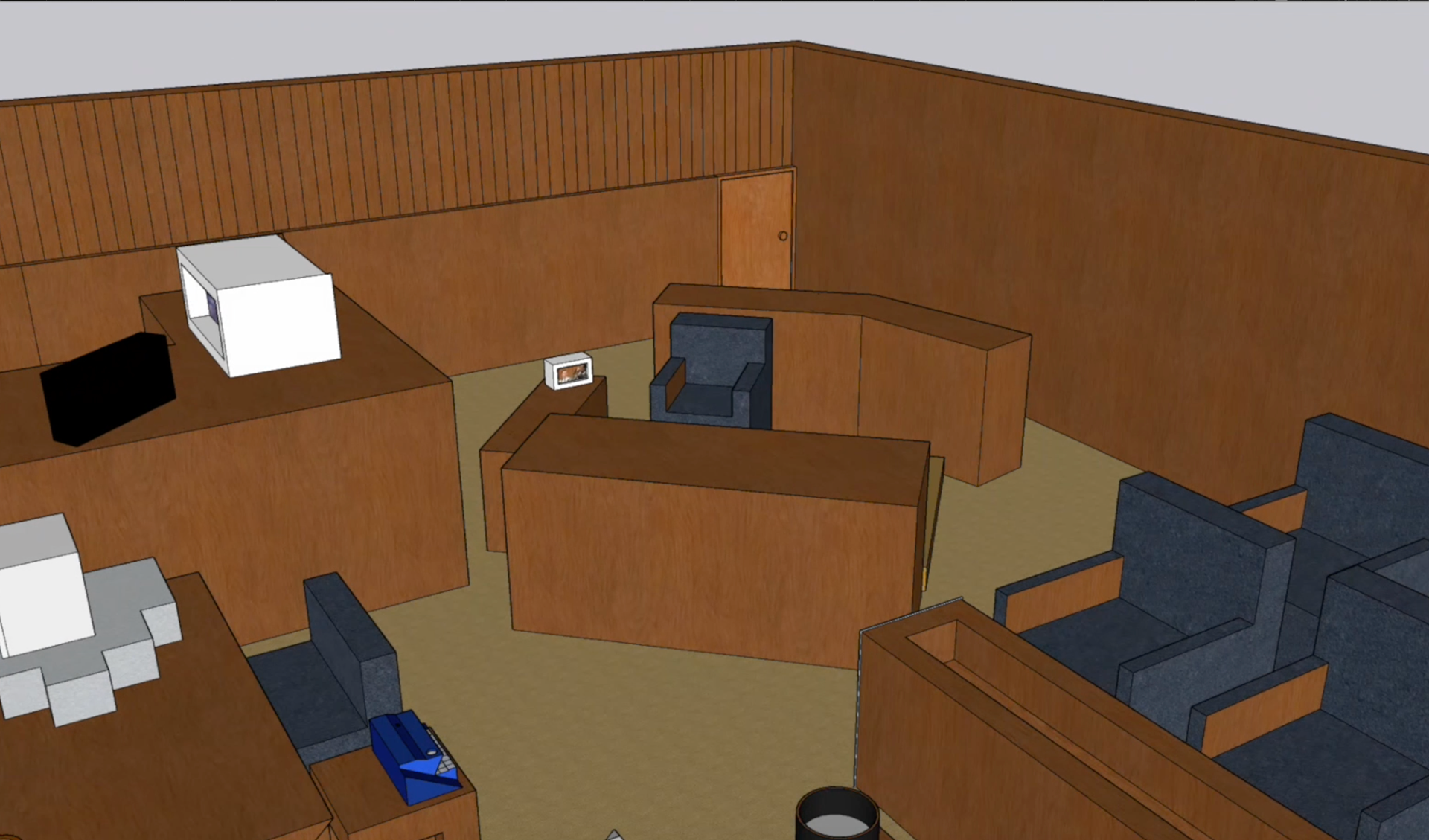As a companion piece to my investigative newspaper, I developed a 3D digital environment of the courtroom to provide a fully immersive perspective on the O.J. Simpson trial. Driven by a desire to expand my technical skill set, I challenged myself to master SketchUp, using the software to build a detailed and spatially accurate reconstruction of the trial's setting. The objective of this dual-media approach was to bridge the gap between information and experience. While the newspaper provided the granular facts and transcripts, the 3D space offered viewers a sense of presence and scale. By integrating the original audio recordings into this visual environment, I created a sensory experience that allowed the audience to not only read the history but to virtually step into the space where the voices and pivotal moments of the case unfolded.