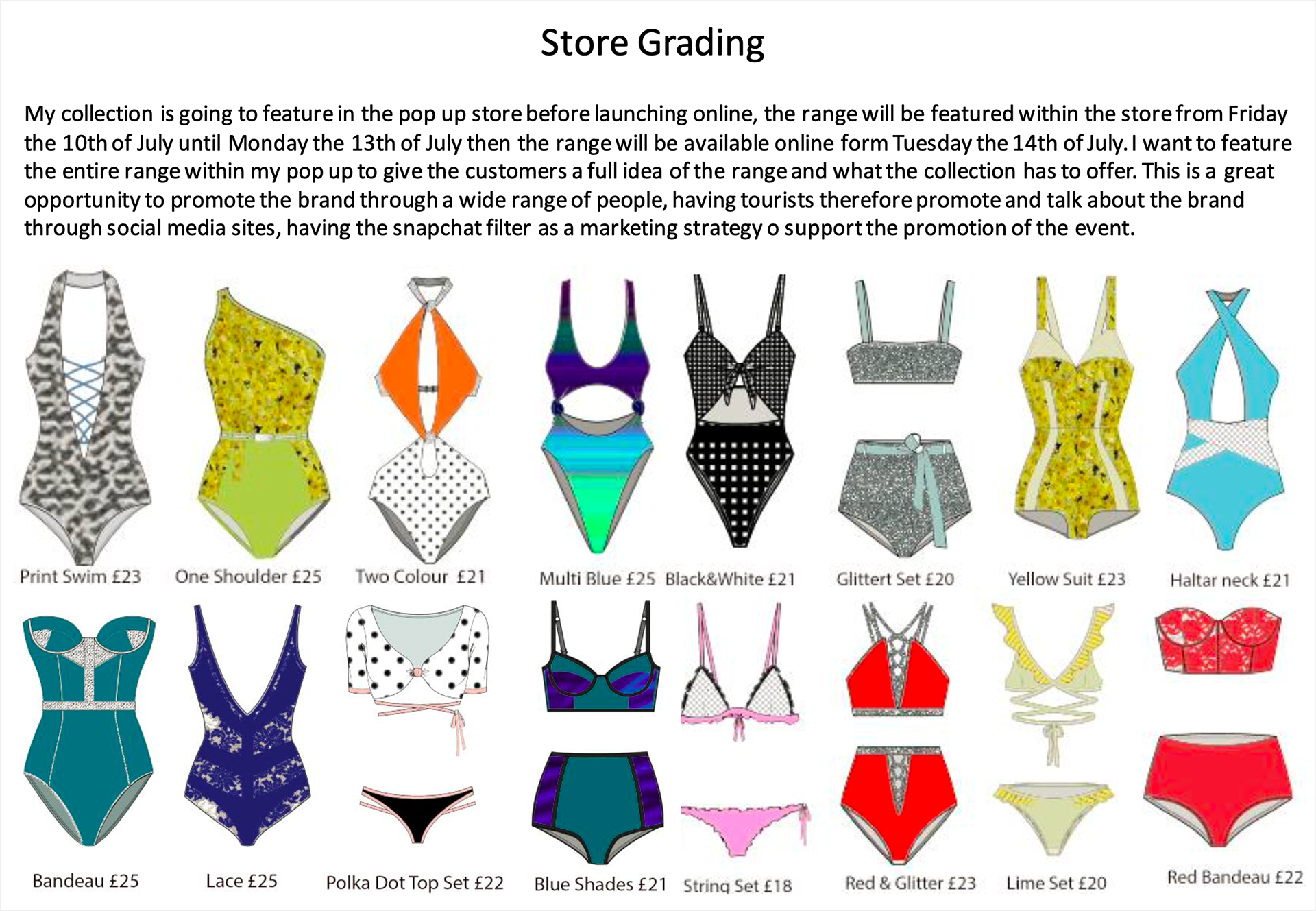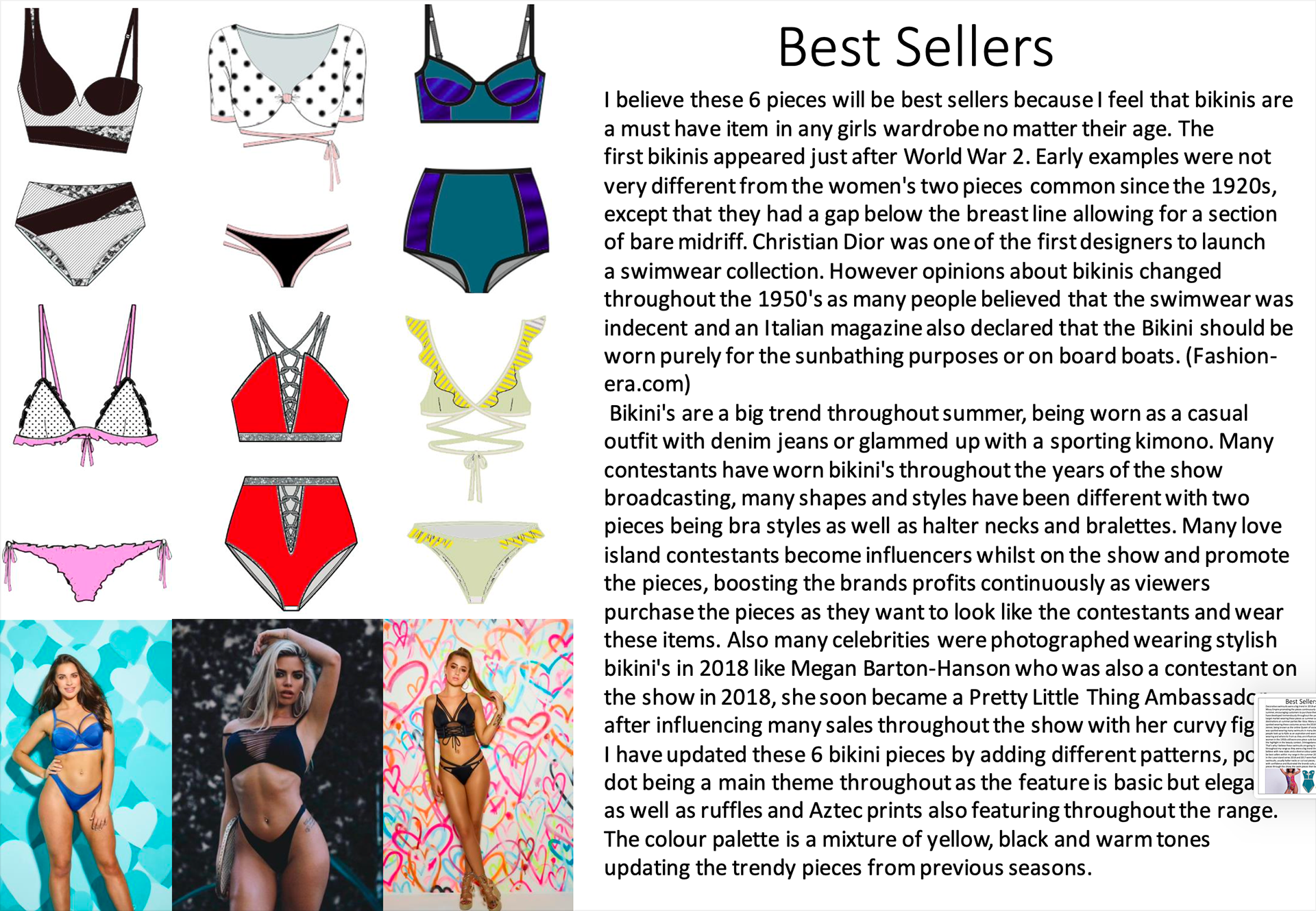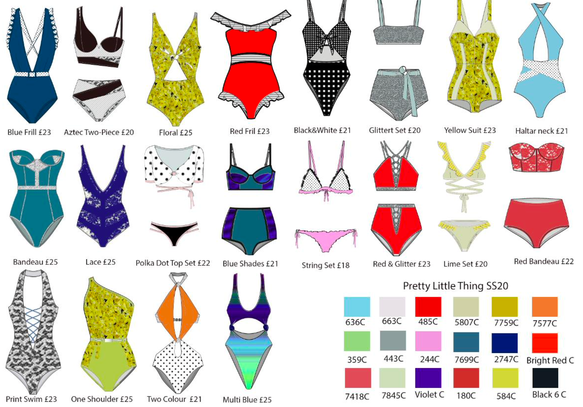 In 2018, I attended the Fashion Retail Academy, where I completed an intensive six-month course and graduated in 2019 with a Level 3 Diploma in Fashion Retail. The curriculum provided me with a comprehensive foundation in the commercial side of the industry, specifically focusing on Buying, Merchandising, and Team Management. For my final capstone project, I developed an end-to-end branded swimwear line featuring a high-profile collaboration between PrettyLittleThing and Megan Barton-Hanson. Capitalising on the peak cultural influence of Love Island at the time, I curated a full commercial deck that synthesized trend forecasting with strategic brand alignment. This project allowed me to apply my skills in assortment planning and market positioning, demonstrating my ability to identify timely consumer trends and translate them into a viable, market-ready retail strategy.